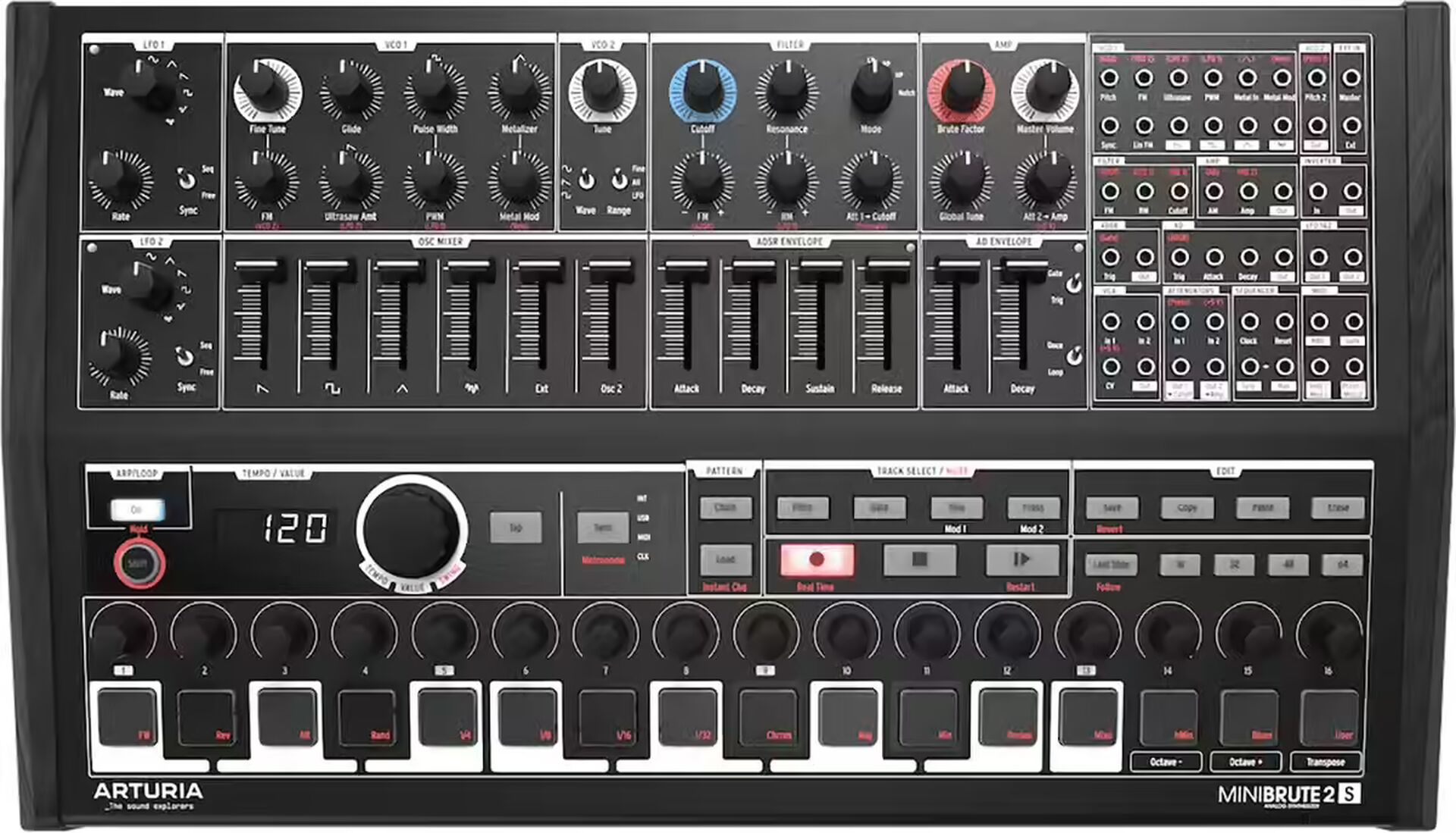 Le MiniBrute 2S reprend le filtre iconique du MiniBrute original, capable de délivrer un son profond et large à faible niveau d’oscillateur, ou tranchant et agressif lorsqu’on augmente l’intensité et qu’on applique le Brute Factor. Il combine ainsi chaleur analogique et puissance sonore, idéale pour toutes les explorations sonores.