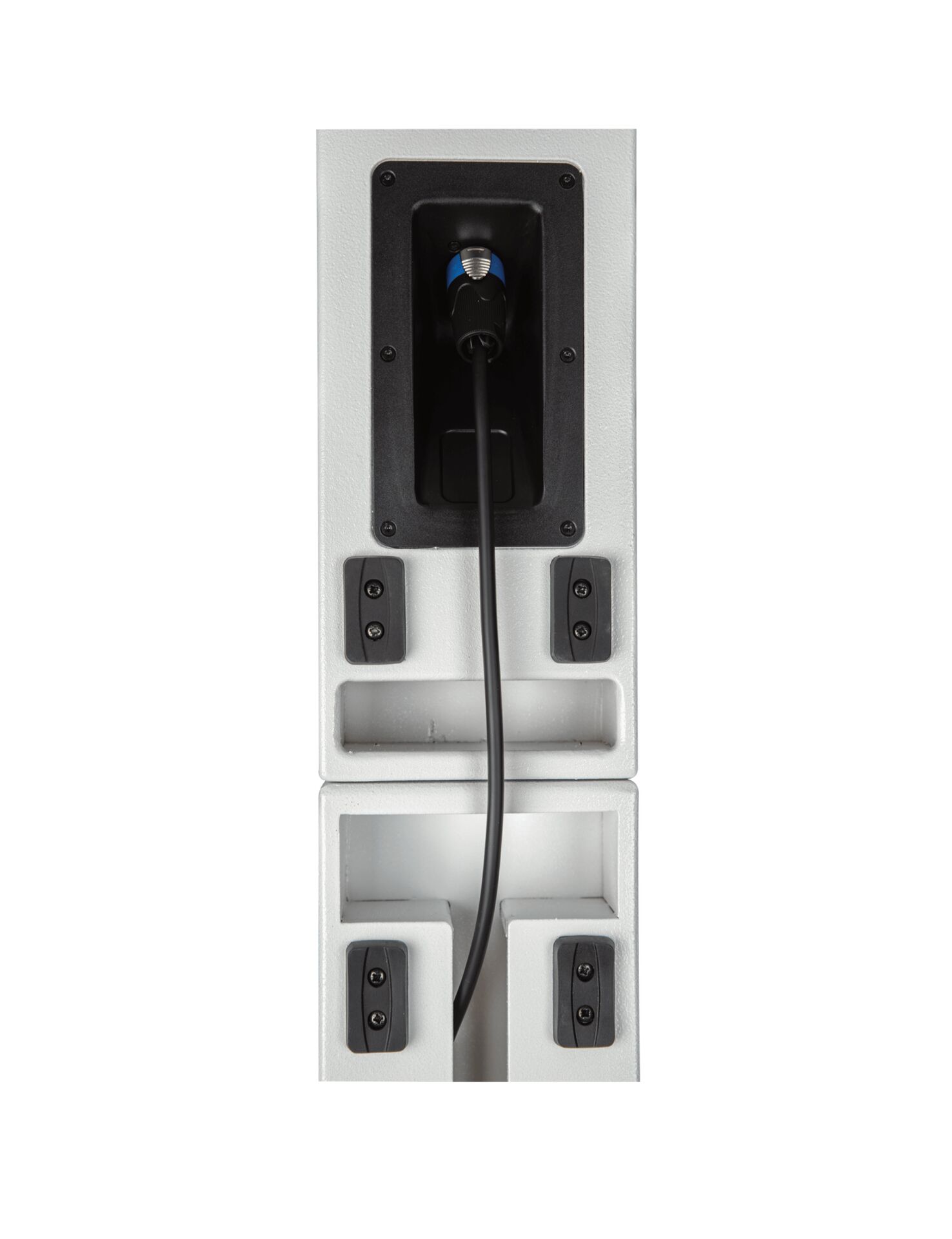 Le système est livré avec câbles, supports et espaceur en noir, s’intégrant facilement dans tout environnement professionnel ou événementiel.