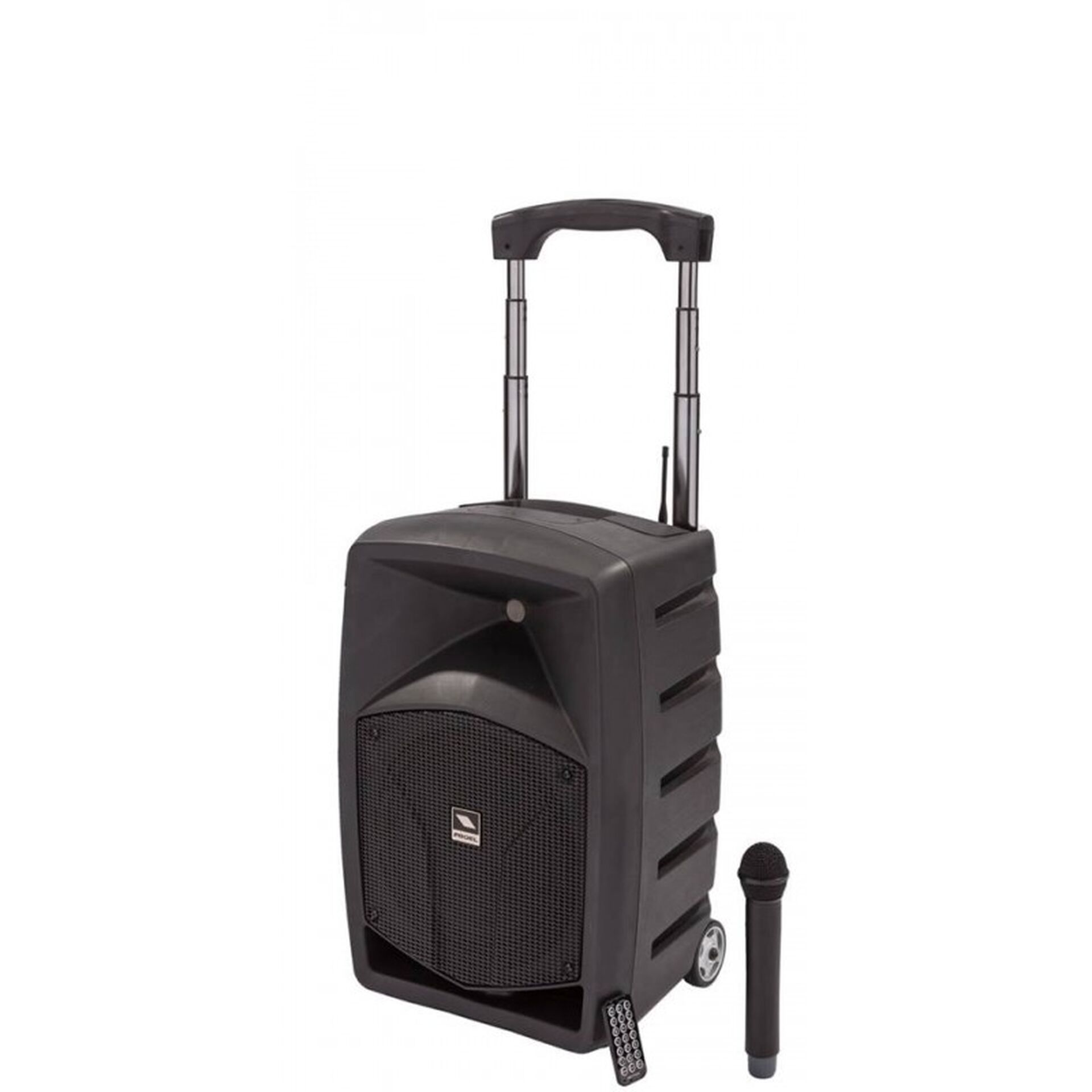 Son autonomie de 6 0 10 heures, variable selon l’intensité d’utilisation, assure une grande liberté d’usage sans contrainte de branchement électrique. La connectivité complète inclut le Bluetooth, un lecteur MP3 USB/WMA avec grand afficheur rétroéclairé, ainsi que de 2 entrées micro, ligne et MP3, idéales pour connecter smartphones et tablettes.