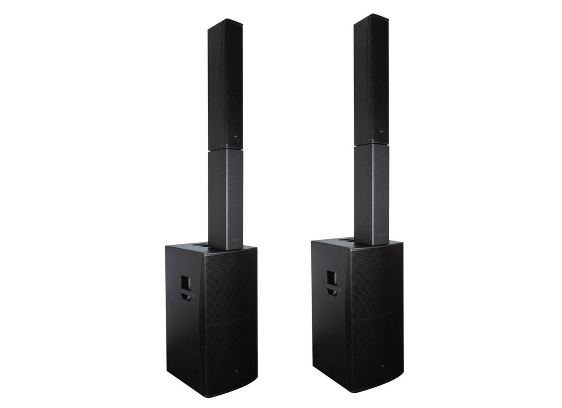 Système de sonorisation actif 2 voies avec subwoofer 12", colonne de haut-parleurs 6 x 4" et tweeter 1.5", 3 entrées audio, puissance 2000W peak