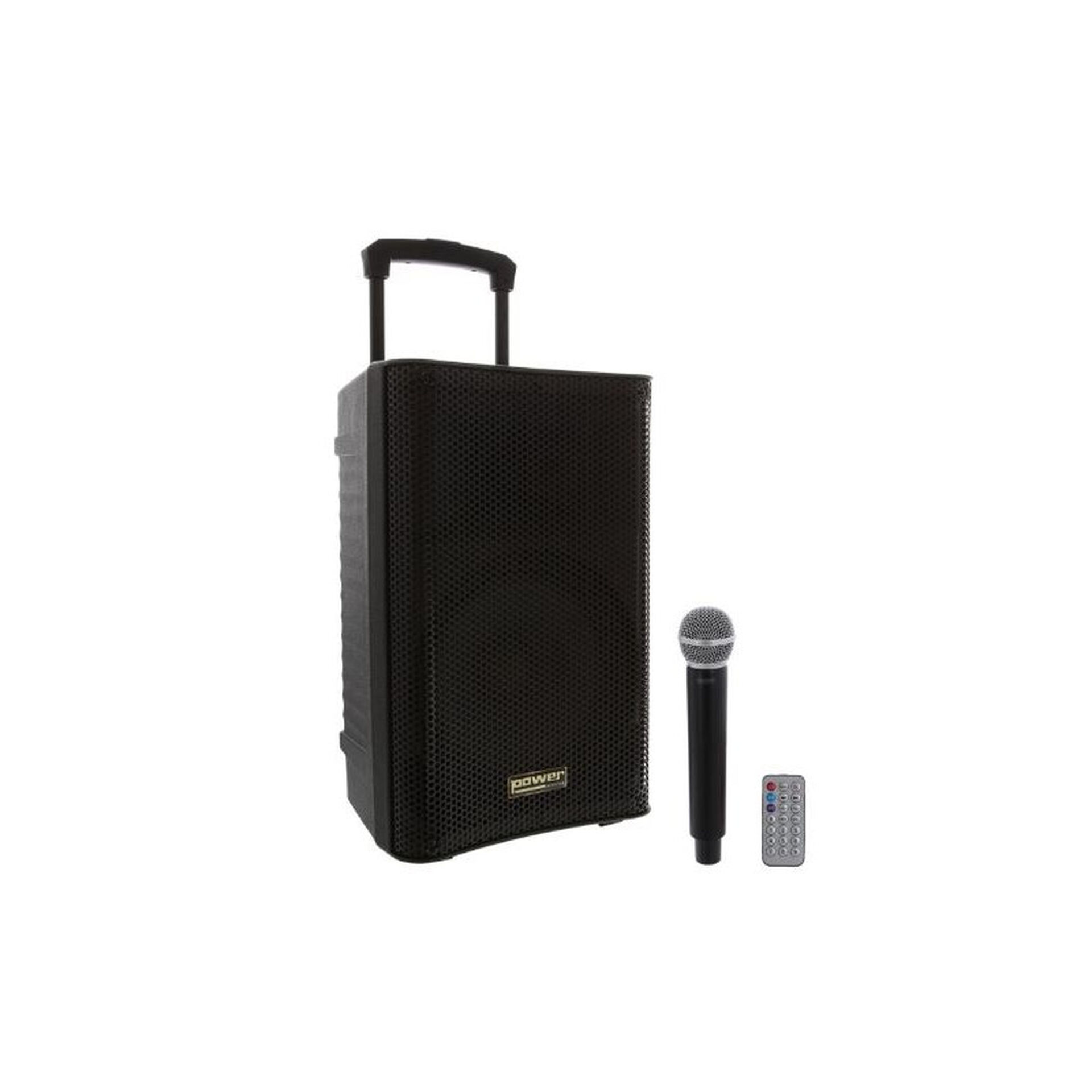 L’enceinte inclut un micro UHF main sans fil ainsi que la possibilité de connecter deux micros filaires supplémentaires, ce qui en fait un système polyvalent pour chant, discours ou animation. Grâce à sa batterie rechargeable, l’autonomie est d’environ 6 heures, suffisamment pour couvrir la plupart des prestations sans alimentation fixe.